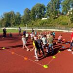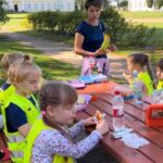 Šogad devāmies uz pilsētas stadionu, lai aktīvi pavadītu laiku. Pa ceļam bērni apskatīja ceļa zīmes un dažādus objektus, kā arī salasīja dabas materiālus. Pie stadiona bērni iepazinās ar uzvedības noteikumiem stadionā, kur izmēģināja skriet pa savu celiņu, meta smilšu maisiņus tālumā, skrēja stafetes un piedalījās kustību rotaļās. Pēc fiziskajām aktivitātēm rīkojām pikniku pie TIC. Ar patīkamu nogurumu un labu garastāvokli devāmies uz bērnudārzu.