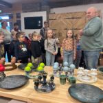 Mūs sagaidīja keramiķis V. Pauliņš ar savu sunīti Bronzu un pastāstīja par savu darbu. Viņš rādīja, kā no parasta māla gabala top vāze. Mēs uzzinājām, ka šis darbs prasa lielu pacietību, precizitāti un radošumu. Pēc tam, kad trauks ir izveidots, tas tiek žāvēts un apdedzināts īpašā krāsnī ļoti augstā temperatūrā.