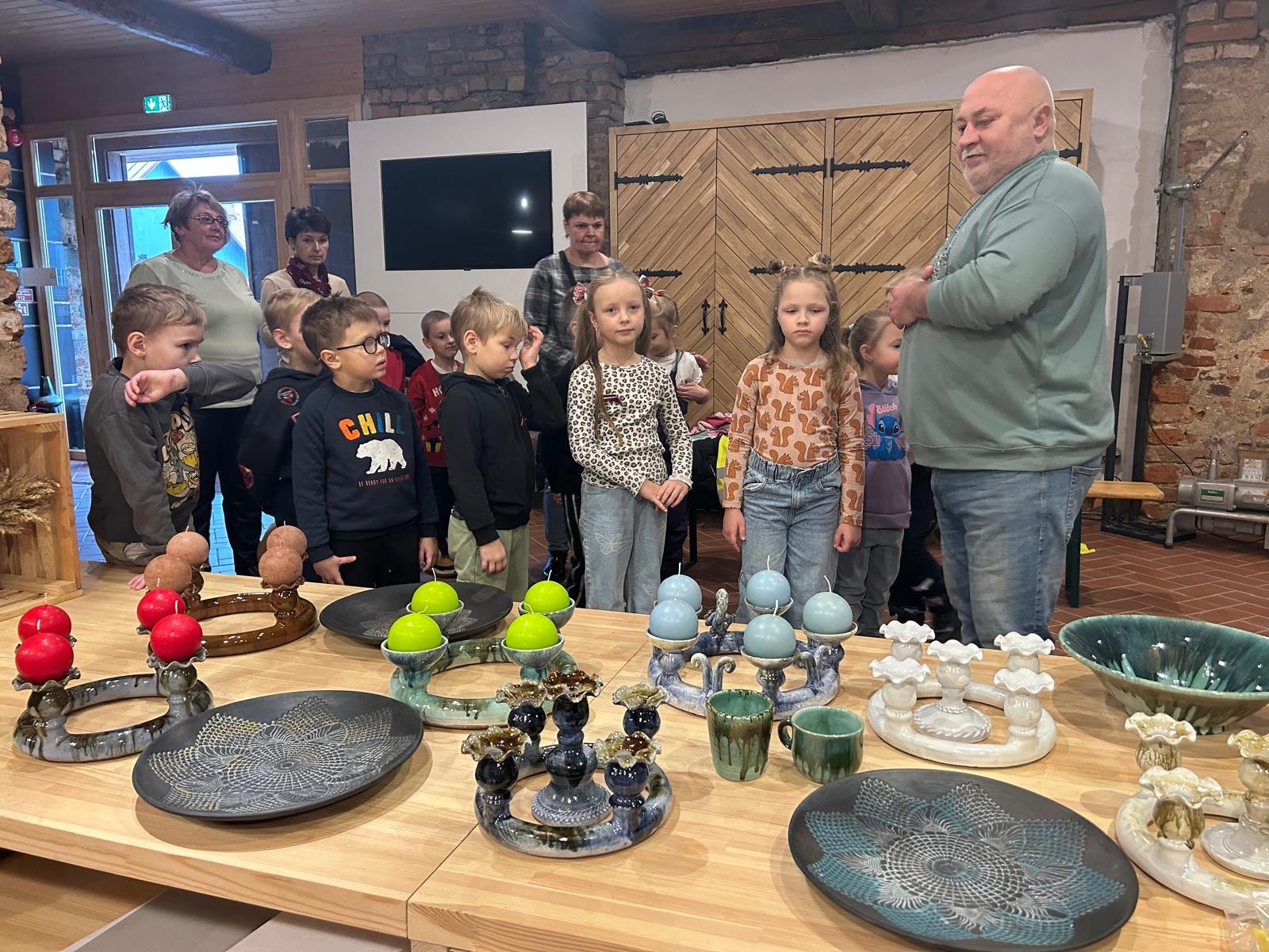 Mūs sagaidīja keramiķis V. Pauliņš ar savu sunīti Bronzu un pastāstīja par savu darbu. Viņš rādīja, kā no parasta māla gabala top vāze. Mēs uzzinājām, ka šis darbs prasa lielu pacietību, precizitāti un radošumu. Pēc tam, kad trauks ir izveidots, tas tiek žāvēts un apdedzināts īpašā krāsnī ļoti augstā temperatūrā.