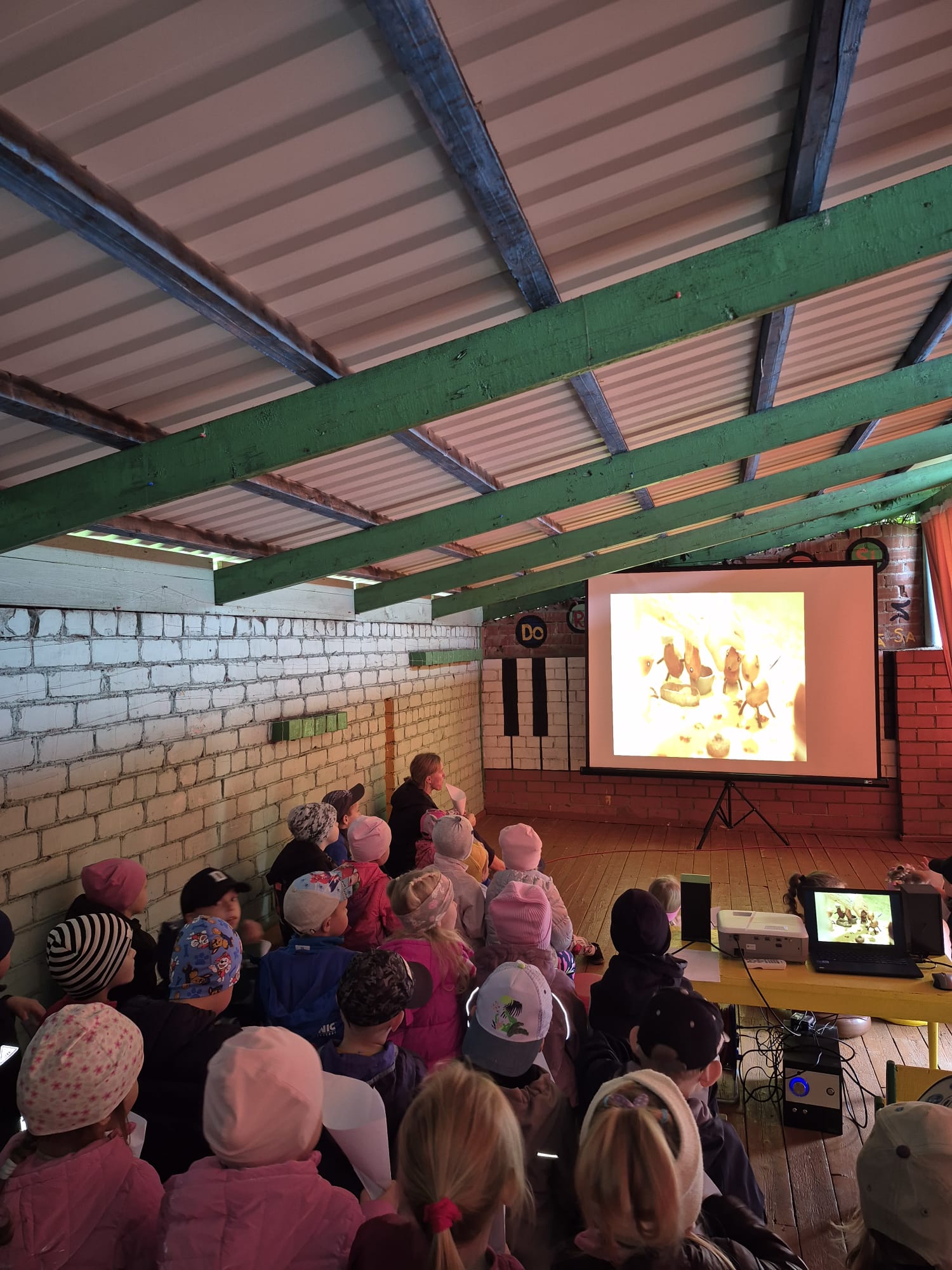Lai filmiņas skatīšanās būtu interesantāka arī šogad bērnudārza estrāde pārtapa par mazu kinoteātri ar popkornu.