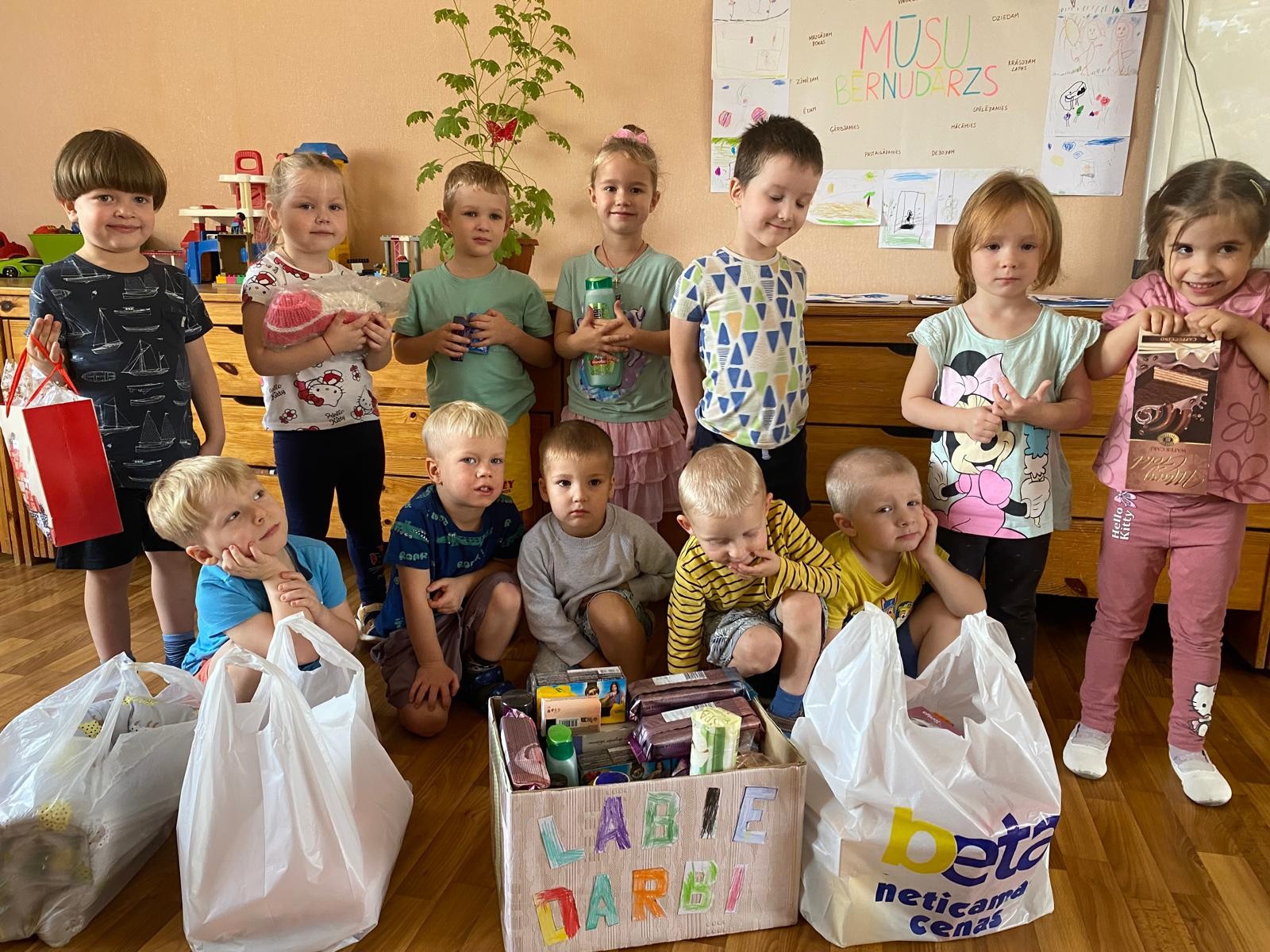 “Labo darbu” nedēļas ietvaros mūsu bērnudārza grupiņas “Mārītes” un “Taurenīši” piedalījās labdarības akcijā, kuru organizēja labdarības organizācija “Palīdzēsim.lv”. Šoreiz mēs sagādājām prieku Krāslavas novada sociālās aprūpes centra “Priedes” iemītniekiem.