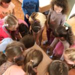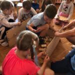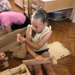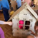 Apskatot instrukciju bukletu, kā pirmo bērni ķērās būvēt māju. Sākumā būvniecības darbi negāja tik raiti, jo katrs gribēja ātrāk būvēt, pielikt, skrūvēt lielās skrūves klāt. Beigās tomēr nonāca pie secinājuma, ka kādam vajag uzraudzīt ,, būvdarbus’’, kādam pienest vajadzīgo detaļu, kādam atnest skrūvi, kādam pieturēt utt. Rezultāts – māja gatava, līdz ar to ir nostiprināta jaunrades prasmju attīstīšana.