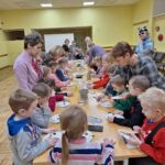 Atgriežoties atpakaļ bērnudārzā, bērni cienājās ar siltu tēju un vecāku ceptajām pankūkām.