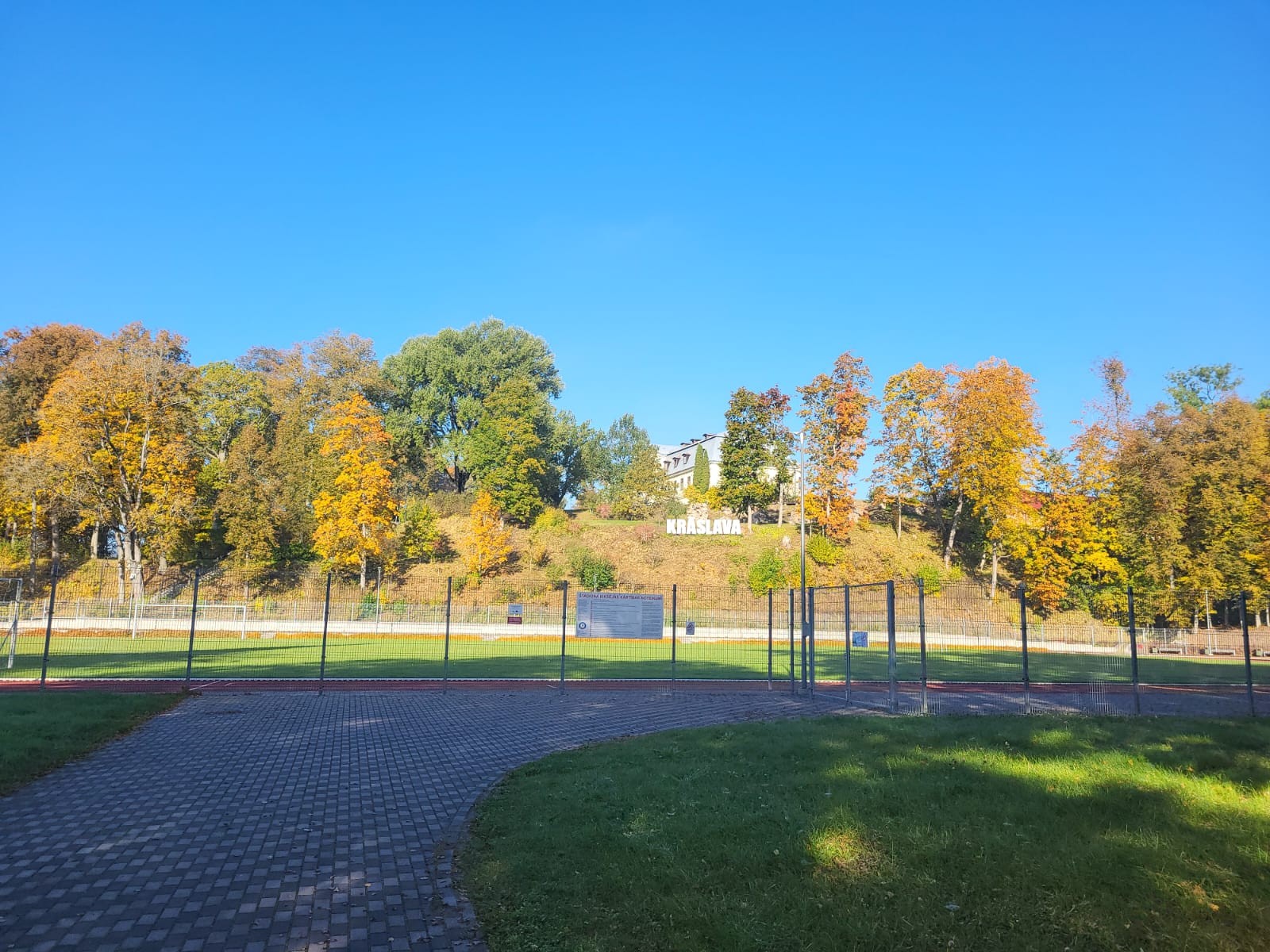 Pārgājiena laikā bērni pamanīja arī lielo uzrakstu ,,KRĀSLAVA”, kurā uzmanīgi meklēja pazīstamus burtus. Pēc aktīvas pastaigas visus gaidīja neliels pikniks parkā – bērni mielojās ar līdzi paņemtajiem našķiem, dalījās iespaidos un priecājas par kopā pavadīto laiku.